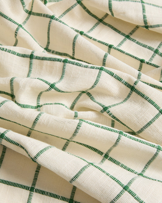 Ensemble Adesta de 2 sets de table en coton 100 % écru à carreaux verts 35 x 50 cm