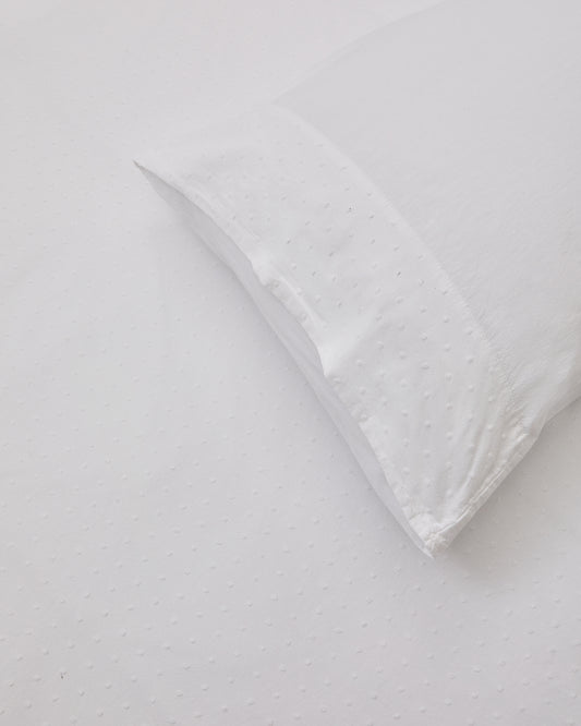 Ensemble Atenie housse de couette taie d’oreiller coton blanc détail plumetis lit de 90 cm