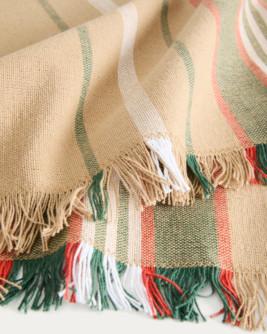 - Ensemble de 2 sets de table 100 % coton à rayures et avec franges.
