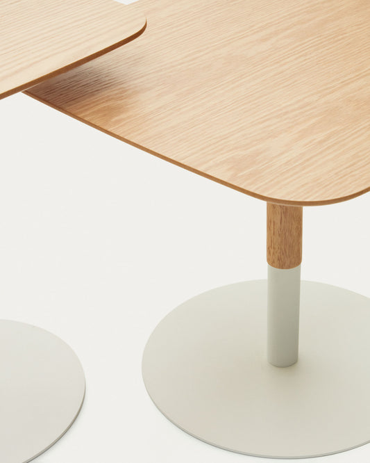 Ensemble de 2 tables d'appoint Watse placage chêne et métal peint blanc mat