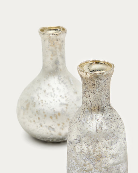 • Ensemble de deux vases en verre recyclé peints en blanc.