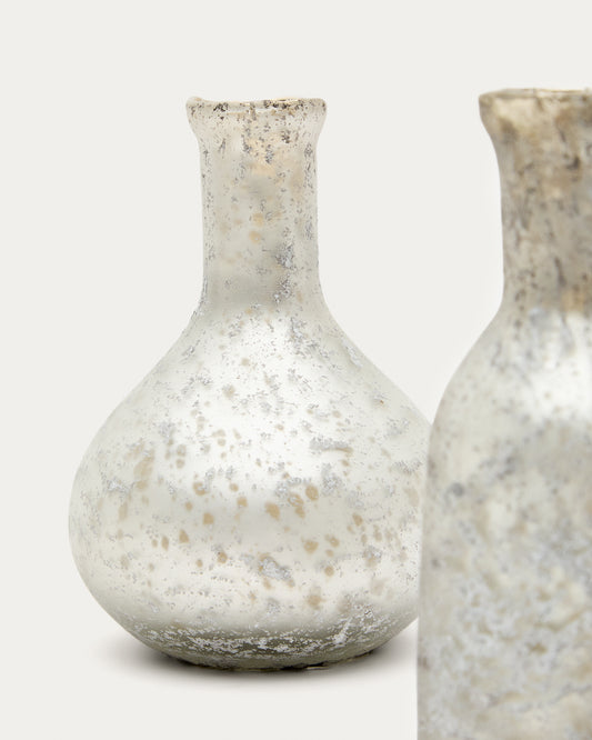 Ensemble Deila de 2 vases en verre recyclé blanc 13 cm