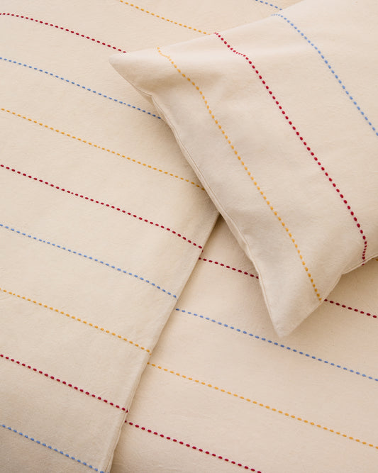 Ensemble Indani housse de couette, taie d’oreiller, drap housse coton bio à rayures lit 70 cm
