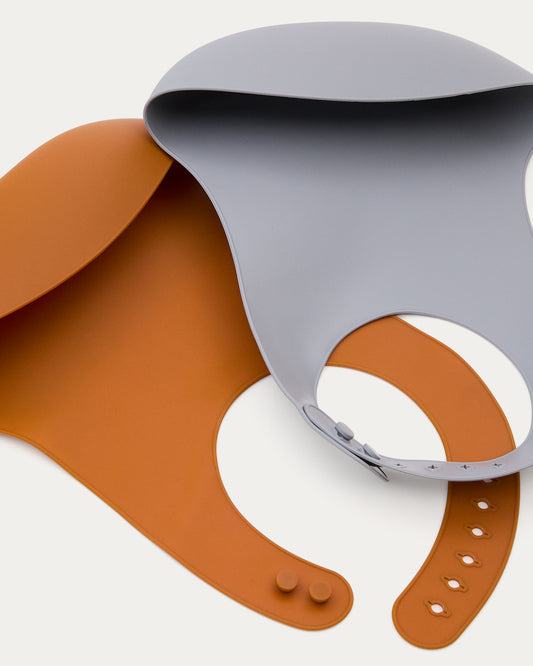 Ensemble Lili de 2 bavoirs en silicone orange et bleu