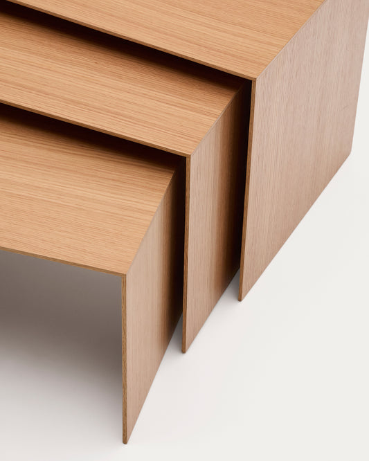 Ensemble Litto de 3 tables gigognes en placage de chêne FSC Mix Credit 60 x 40 / 51 x 36 / 42 x 31 cm