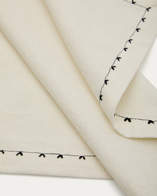 Ensemble Olim de 2 serviettes 100 % coton beige avec détail brodé noir