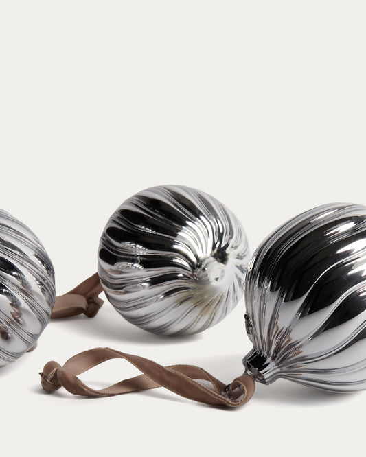 Ensemble Oranel de 3 décorations suspendues en verre recyclé argenté Ø 8 cm