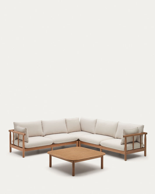 Ensemble Sacova canapé d'angle 5 places et table basse en bois d'eucalyptus