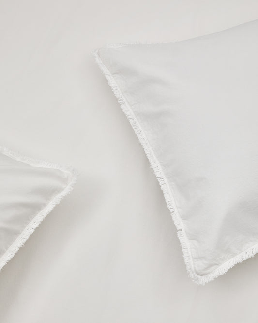 Ensemble Sifinia housse de couette et taies d’oreiller 100 % en percale de coton franges couleur écrue lit 150 cm