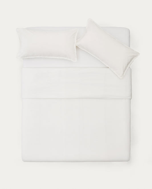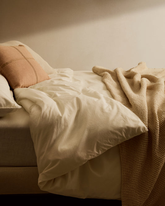 Ensemble Sifinia housse de couette et taies d’oreiller 100 % percale de coton franges couleur écrue lit 180 cm