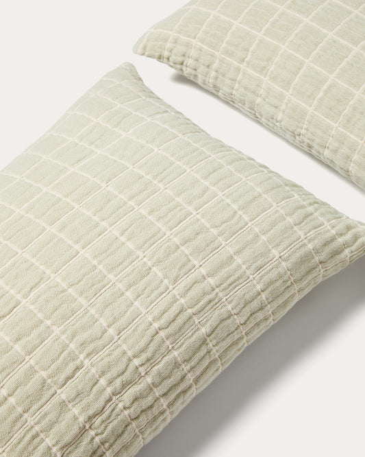 Ensemble Tivaro de 2 housses de coussin 100 % coton jacquard à carreaux vert clair 30 x 50 cm