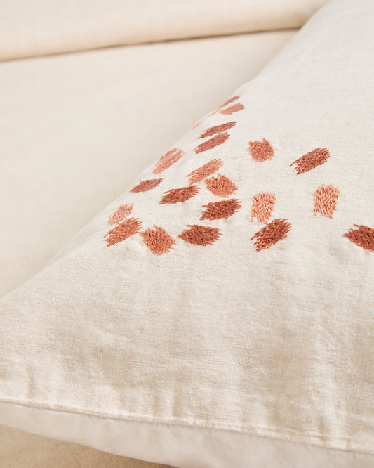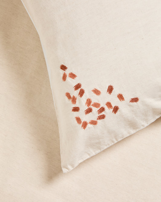 • Fabriqué en coton et en lin avec broderie sur la taie d’oreiller.