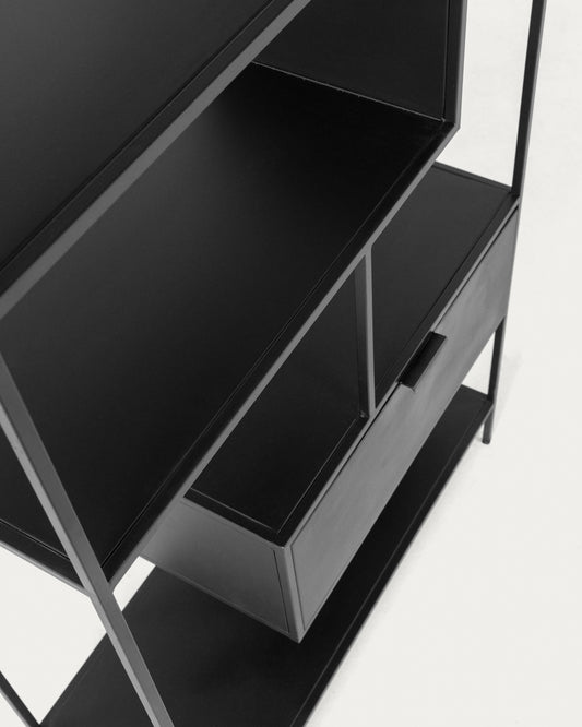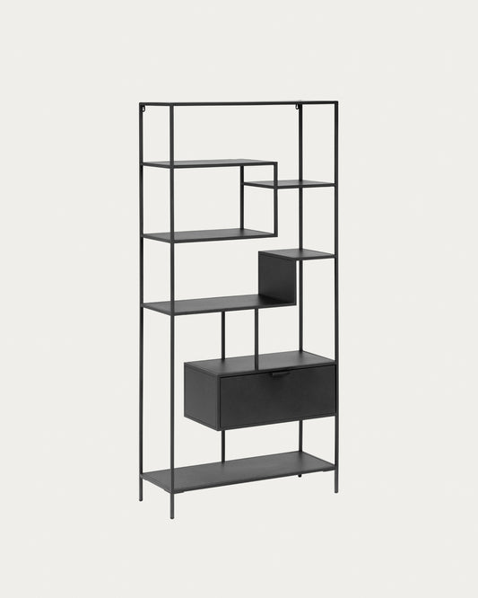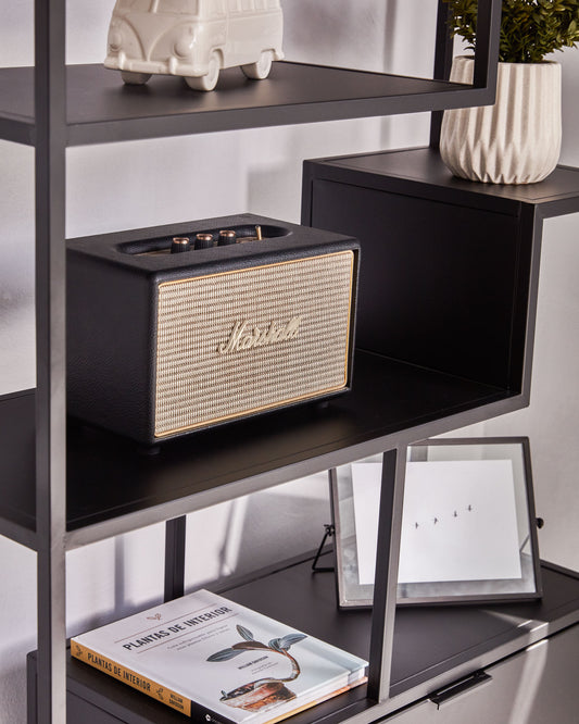 Étagère de la collection Shantay, idéale pour ceux qui aiment la tendance industrielle et les petits espaces. Misez sur l'acier et le contreplaqué noir pour la déco de votre maison. Le côté obscur n'a jamais eu un style si clair.