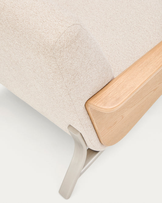 Fauteuil Amsen beige en contreplaqué de chêne avec pieds en acier inoxydable brossé