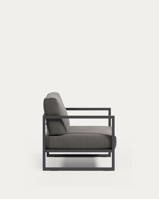 Fauteuil Comova gris foncé 100 % pour extérieur en aluminium noir