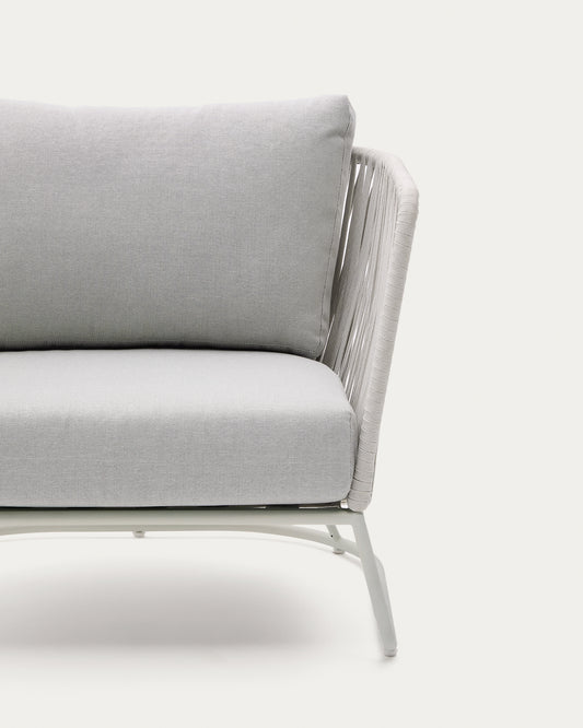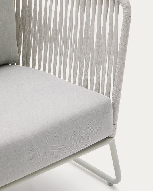 - Fauteuil avec dossier et accoudoirs tressés à la main en corde résistante aux UV.