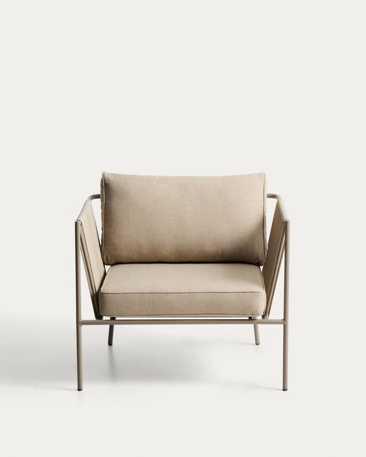 Fauteuil d’extérieur Zivia en corde écrue et acier galvanisé taupe