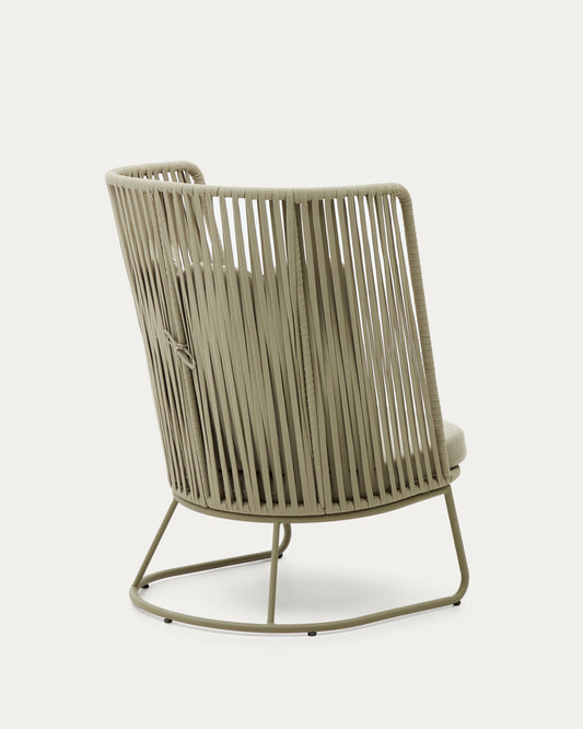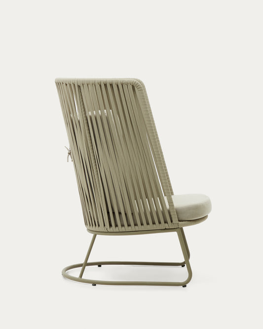 - Fauteuil avec dossier et assise tressés à la main avec une corde résistante aux rayons UV