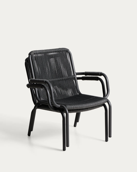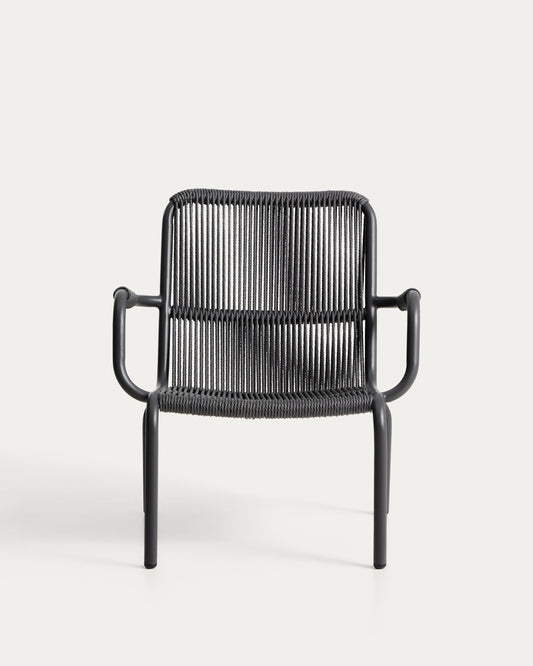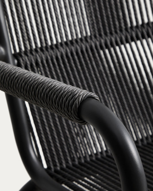 Fauteuil empilable Salis en aluminium graphite et corde synthétique gris foncé
