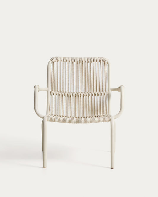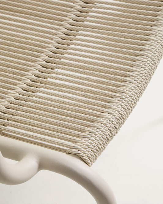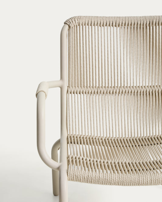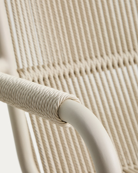 Fauteuil empilable Salis en aluminium taupe et corde synthétique beige