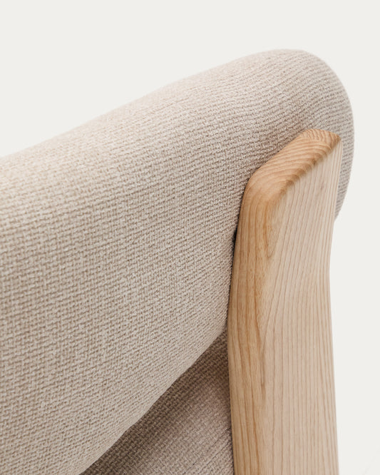 Fauteuil Granite tissu chenille beige pieds en bois de frêne finition ton naturel FSC 100 %