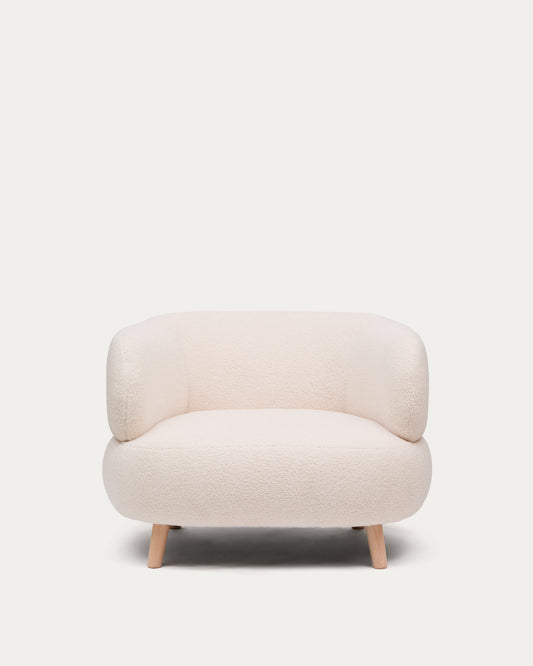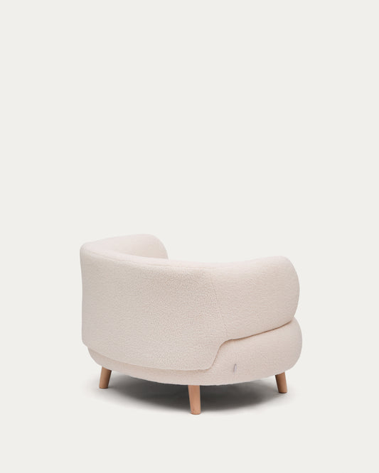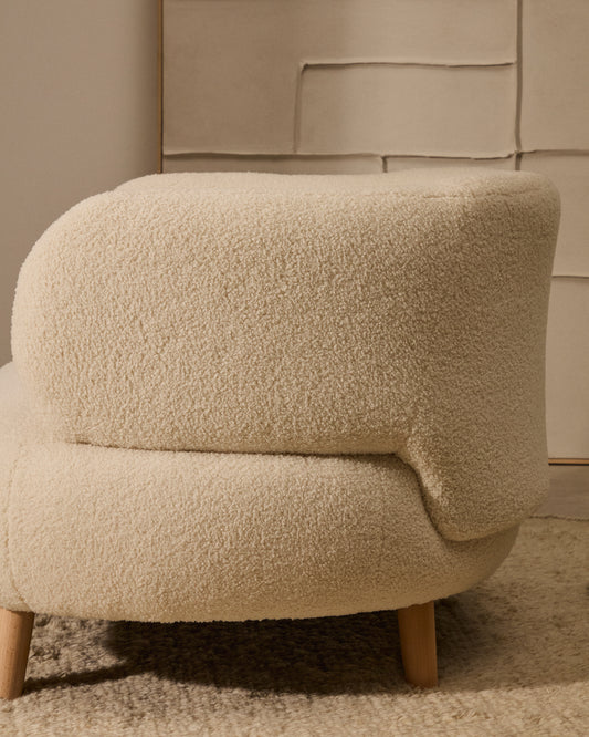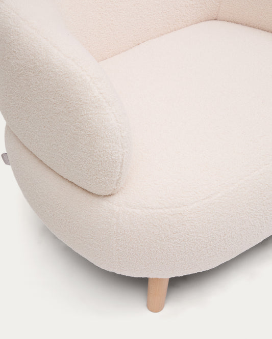 Fauteuil Luisa bouclette écru avec pieds en bois de hêtre 90 cm