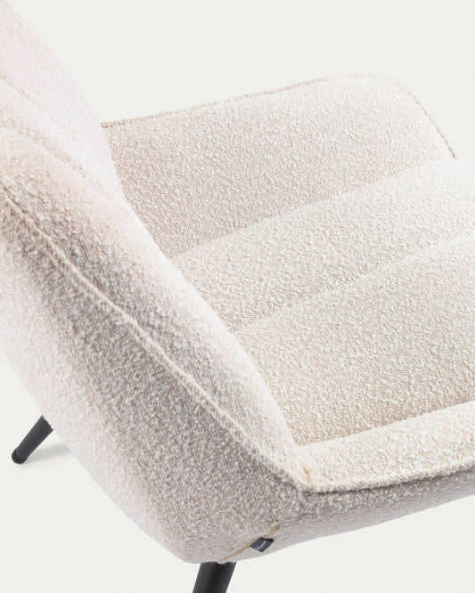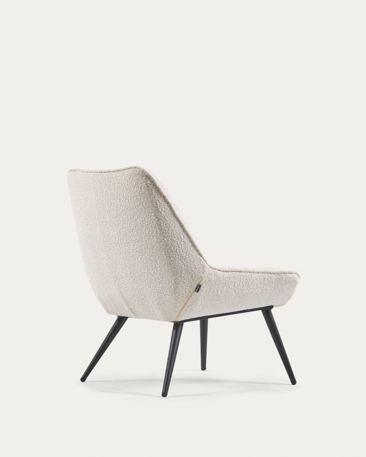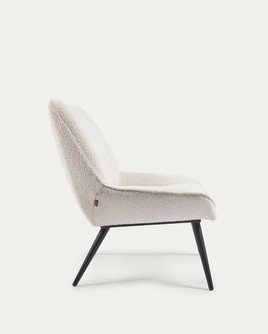 Fauteuil Marlina bouclette blanc avec pieds en acier peint noir