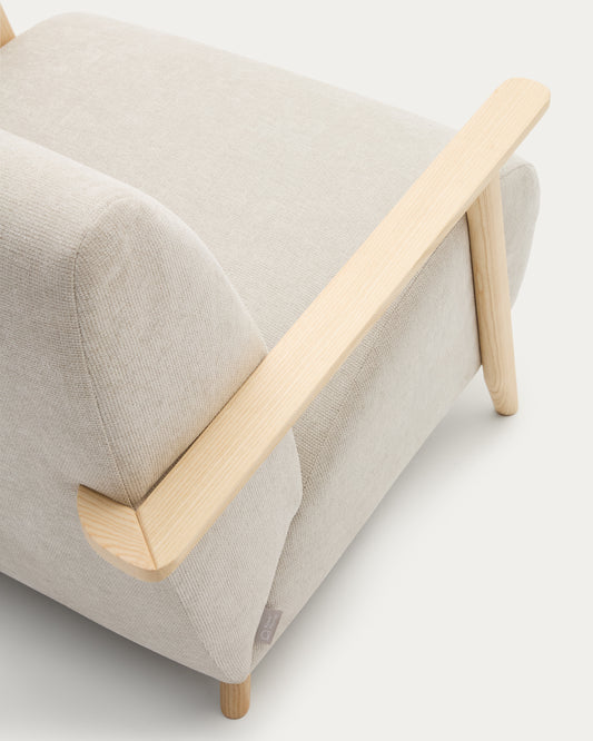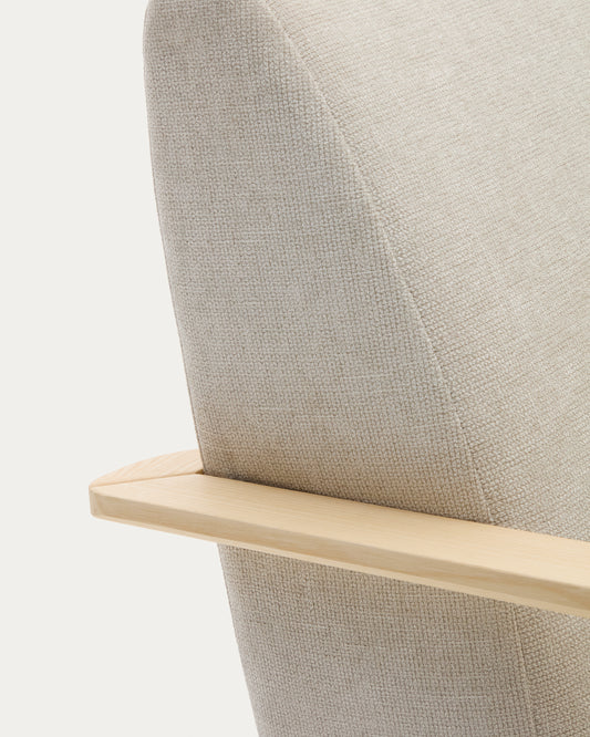 Fauteuil Meghan en tissu chenille perle et bois de frêne finition naturelle FSC Mix Credit
