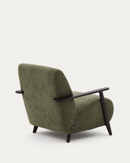 Fauteuil Meghan en tissu chenille vert et bois de frêne finition wengé FSC Mix Credit