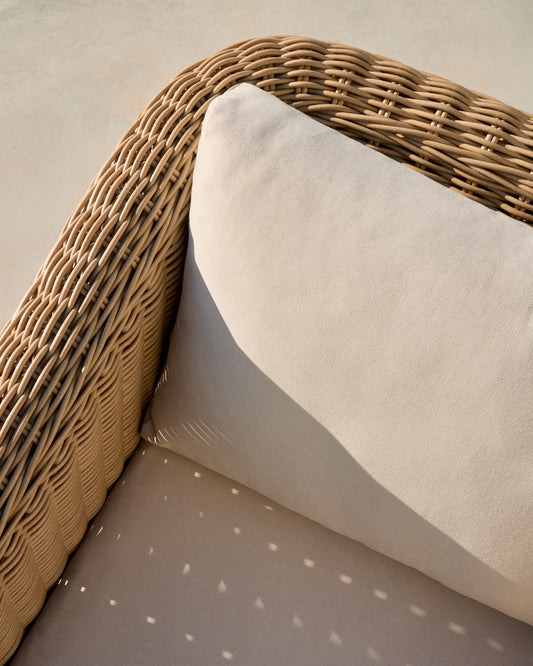 Une collection qui allie l’aspect rustique et la simplicité d’entretien du rotin synthétique avec une esthétique aux lignes arrondies et douces. Résistante aux intempéries, elle conservera sa beauté et sa structure à l’intérieur comme à l’extérieur, tout en étant facile à nettoyer. Les coussins sont déhoussables et déperlants, pour un entretien facile. Nous recommandons de les mettre à l’abri en cas de pluie ou de recouvrir le canapé avec la housse de protection Iria pour le conserver en parfait état à long terme.