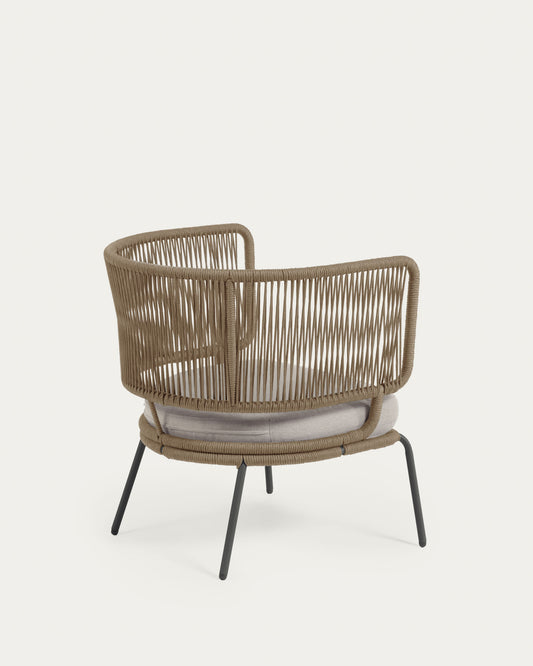 Fauteuil Nadin en corde beige et pieds en acier galvanisé
