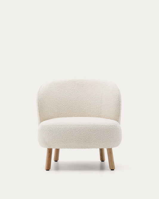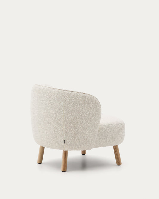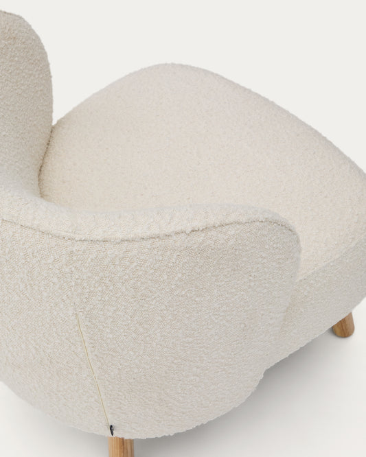 Fauteuil Ulit en tissu effet bouclette blanc et pieds en bois de hêtre finition naturelle