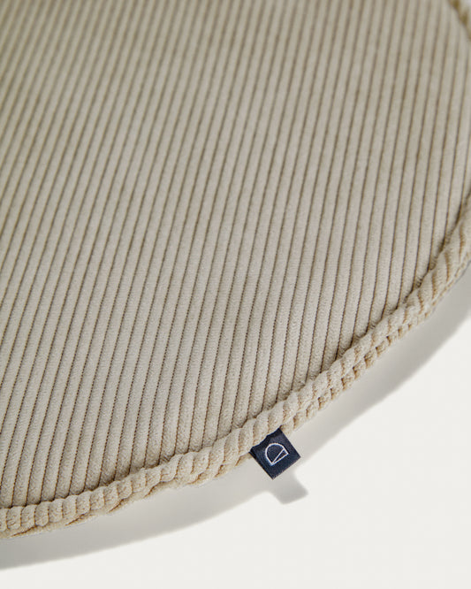 Galette de chaise ronde Sora velours côtelé taupe Ø 35 cm