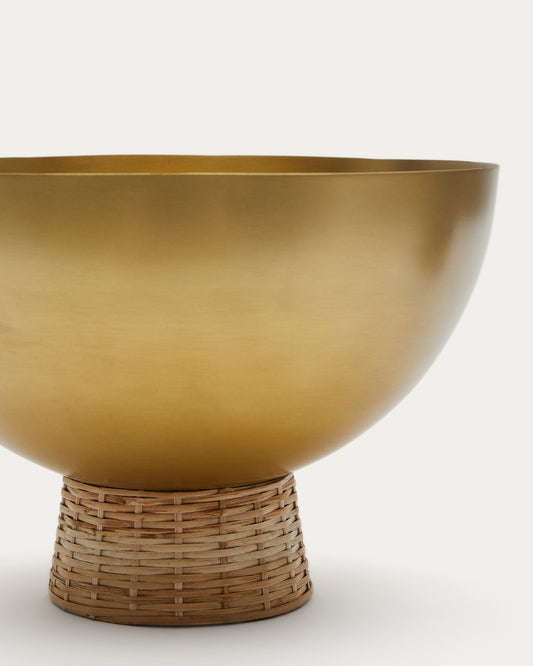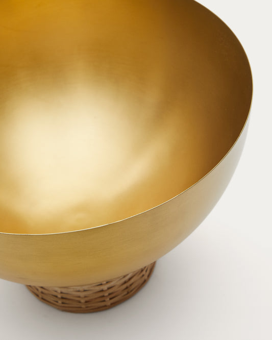 - Bol en acier inoxydable avec finition dorée et rotin.