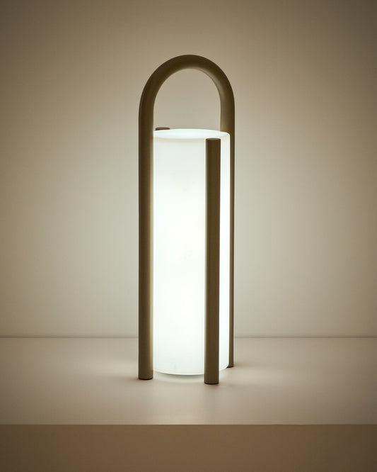 Grande lampe de table portable Leros en polyéthylène et acier taupe