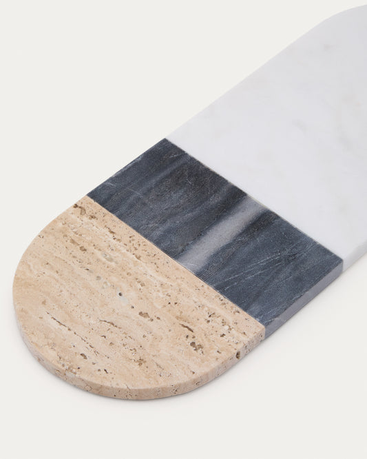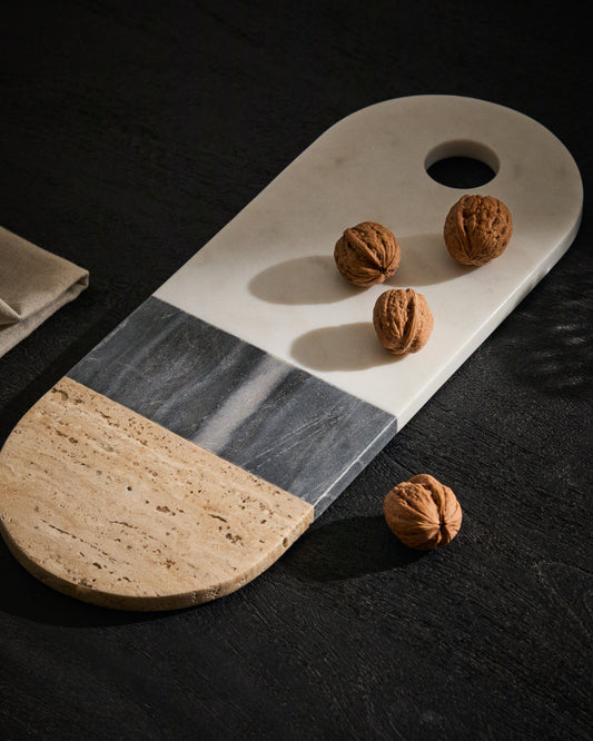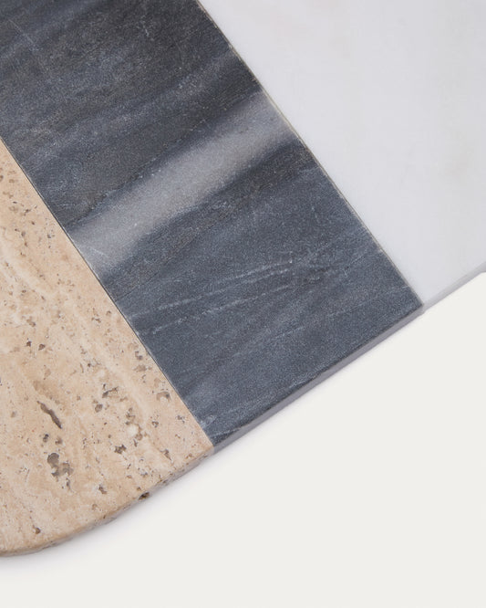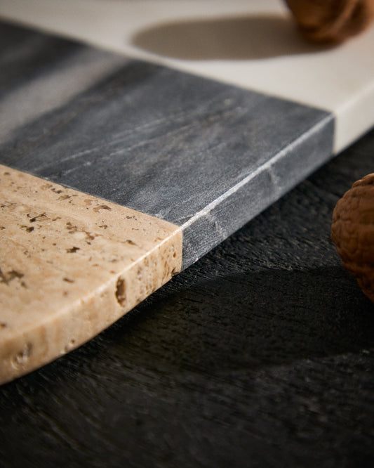 Grande planche de service Nivol en marbre blanc et noir et travertin