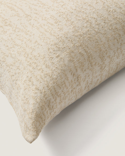 La housse de coussin en jacquard à pois apporte du caractère et de la sophistication à tout espace grâce à un tissu visuellement riche. Le design se distingue par un subtil contraste de tons et un relief en pointillé qui crée une texture dynamique et immersive. Chaque housse est confectionnée à la main, rendant chaque pièce unique avec de légères variations.