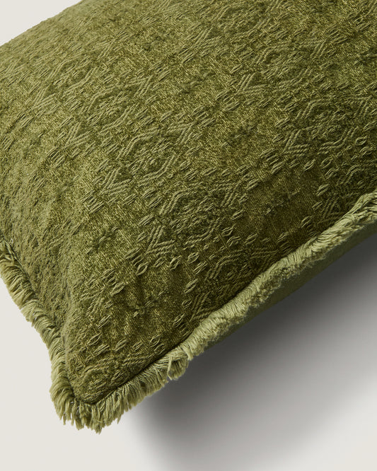 Housse de coussin Narela en jacquard coton et viscose vert 50 x 30 cm
