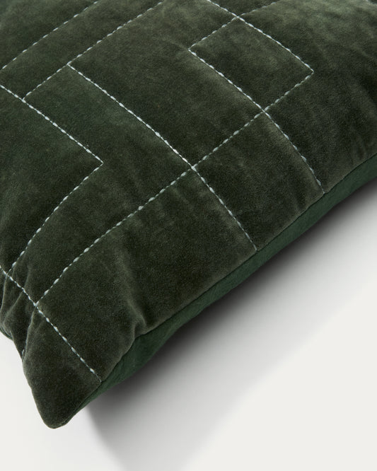 Housse de coussin Prila 100 % coton velours vert avec broderie géométrique 45 x 45 cm
