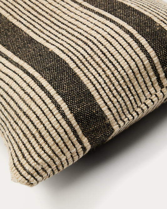 Housse de coussin Uciel en coton et broderie en jute beige et noir 40 x 60 cm