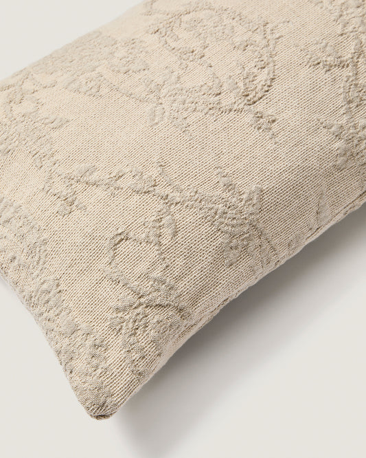 Housse de coussin Velina en jacquard de lin lavé fleuri beige 30 x 50 cm