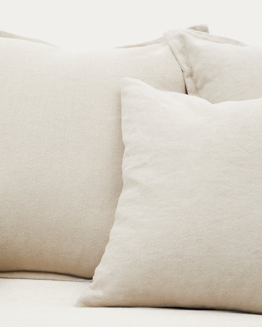 Housse pour canapé Zenira 3 places avec coussins en coton et lin beige 230 cm
