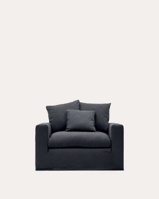 Housse pour fauteuil Nora en lin et coton gris anthracite 140 cm