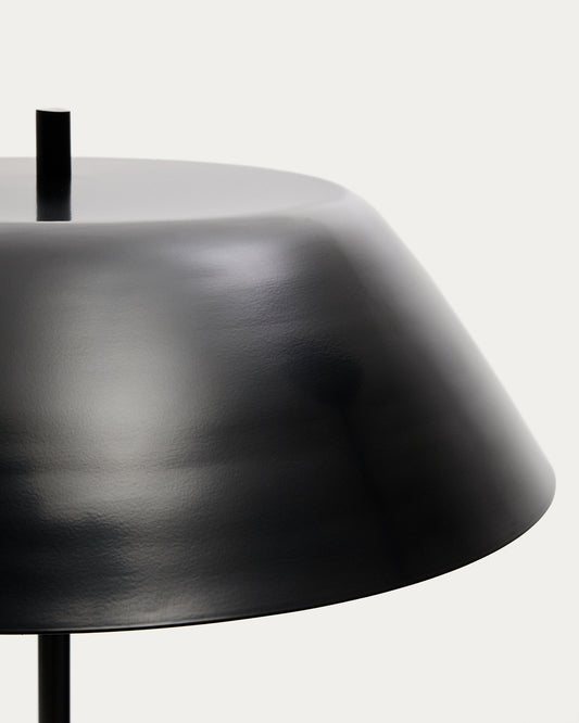 - Lampe de table avec base en marbre noir et abat-jour en métal noir.