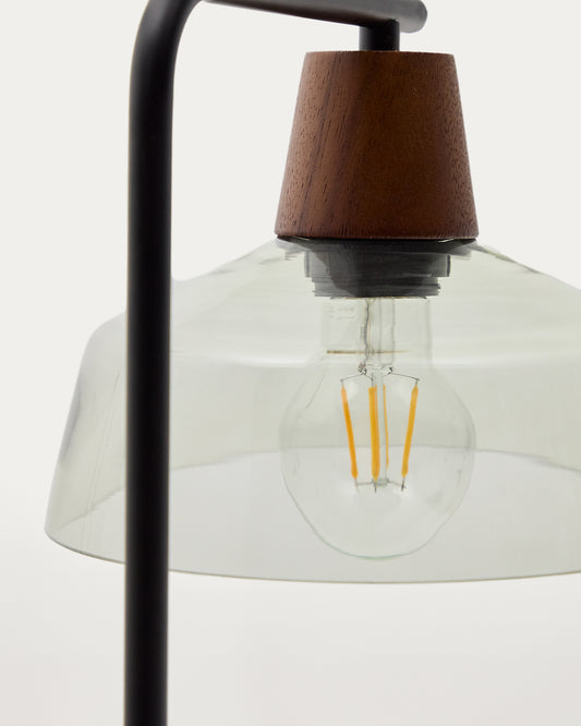 Silex est un design sobre qui combine la pureté du verre vert avec la naturalité du placage de noyer. Une lampe conçue pour illuminer vos pièces avec style.