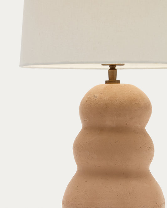 - Lampe de table faite en terracotta et abat-jour en tissu blanc.