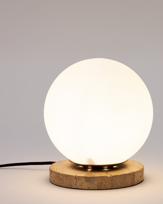 Lampe de table Malachi en verre émaillé et pierre de travertin
