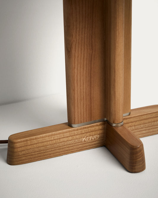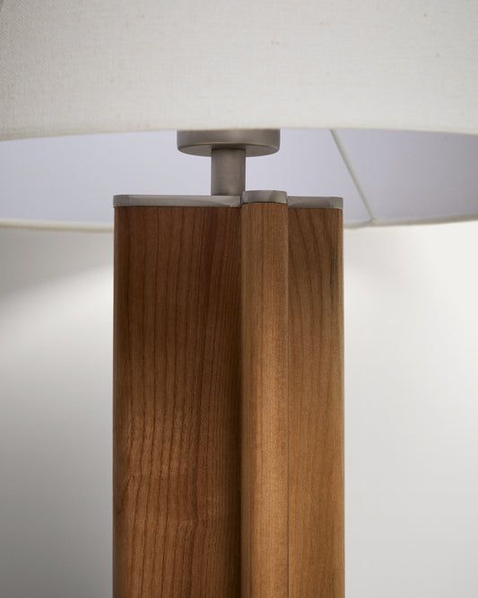 - Lampe de table en bois d’hévéa avec abat-jour en coton.