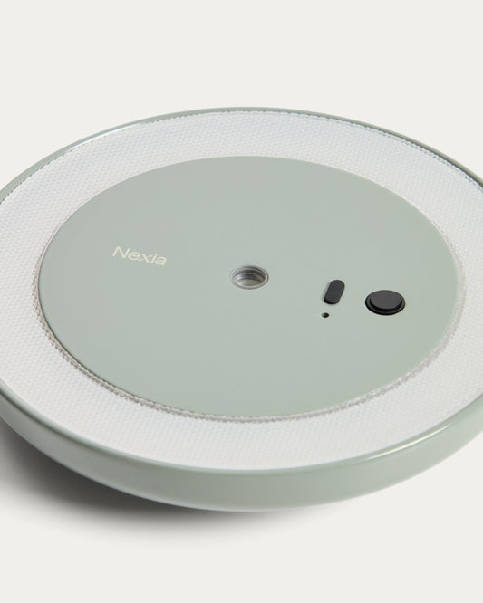 • Lampe de table portable en aluminium avec finition peinte vert clair.