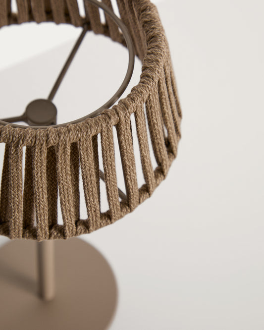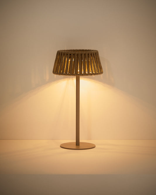 Lampe de table solaire d’extérieur Aldet en corde plate et pied en métal beige